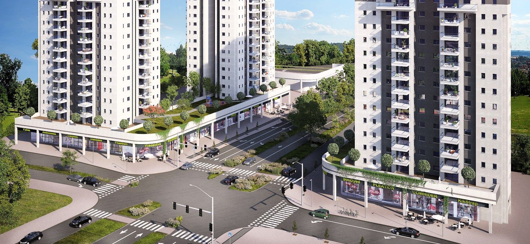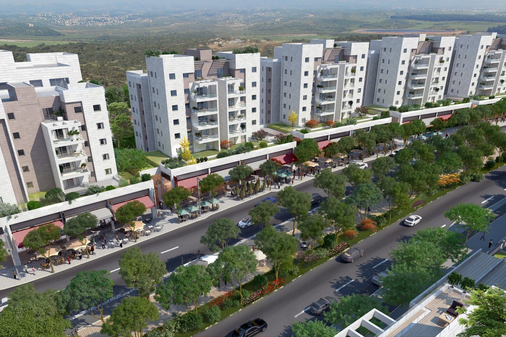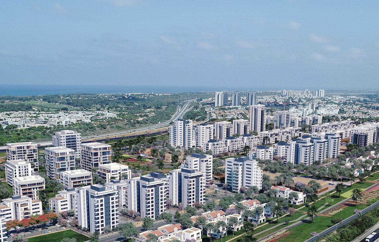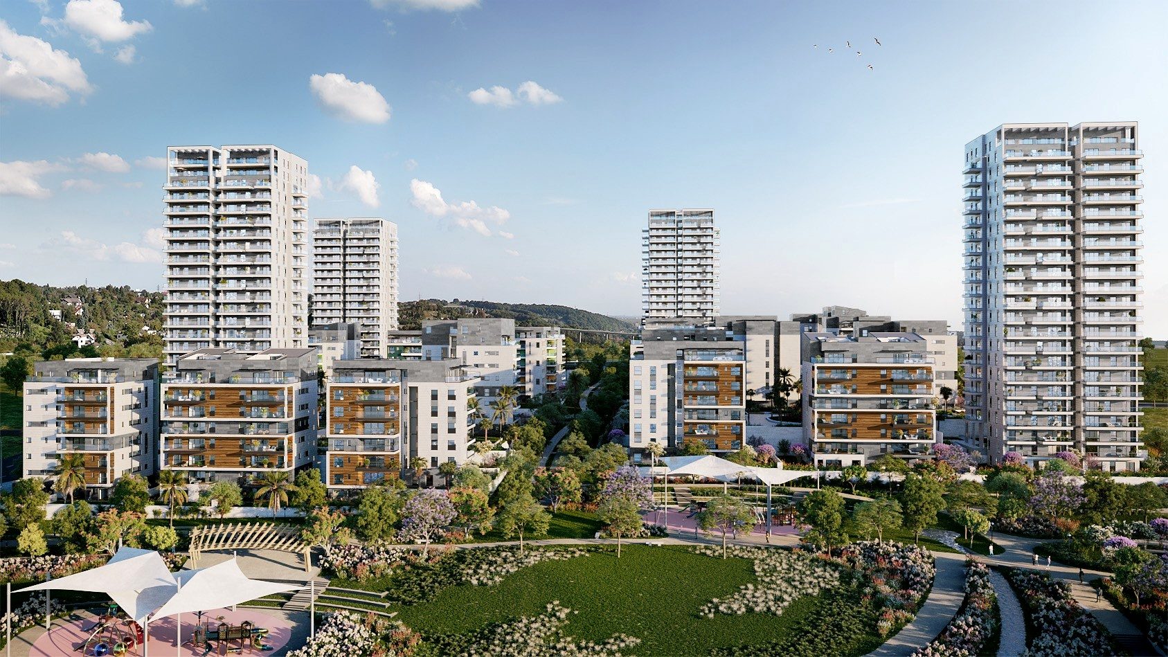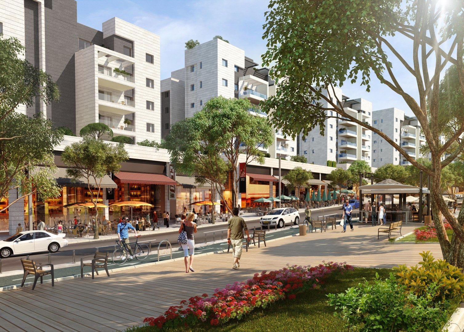 הדמיות אדריכליות של התוכנית שהוגשה לוועדה הארצית לתכנון ובנייה של מתחמים מועדפים לדיור (ותמ"ל). רובע עירוני חדש עם פארקים, מסחר ומגורים.